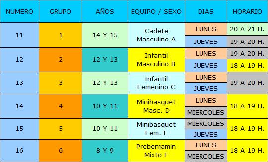 Entrenos y partidos en Polideportivo